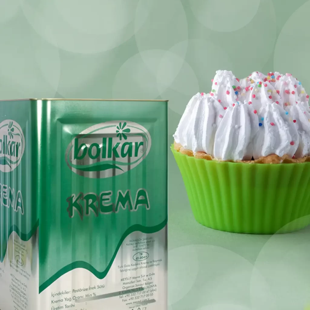 Bolkar Krema Doyumsuz lezzet … Doyumsuz lezzetlere ulaşılabilme adına yılların verdiği tecrübeyi günümüz teknolojisi ile harmanlayan MEYSÜT Bolkar Krema’yı da damak zevkinize uygun bir biçimde, en sağlıklı şekliyle sizlerle buluşturuyor… %65 süt yağı içeriğine sahip olan krema kahvaltılarımızın vazgeçilmezi olup aynı zamanda tereyağı üretiminde kullanılmaktadır. Raf ömrü 1 yıldır.